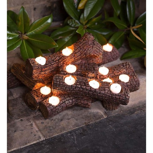 Resin Tealight Fireplace Log Candle Holder Holds 11 Tea Light Candles Rustic Home Garden Tea Light Candle Holders Accessories Ayianapatriathlon Com