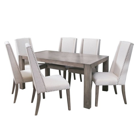 7 piece dining set includes dining table with 18in extention leaf 6 dining chairs so you can fill your dining room or kitchen with furniture you love while saving time and money features.